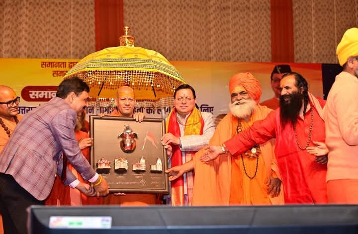 मुख्यमंत्री श्री पुष्कर सिंह धामी ने आज आचार्य शिविर, सेक्टर-09, गंगेश्वर मार्ग, प्रयागराज, उत्तर प्रदेश में आयोजित ‘समानता के साथ समरसता’ कार्यक्रम में प्रतिभाग किया। इस अवसर पर सभी संतों ने उत्तराखण्ड राज्य में सर्वप्रथम समान नागरिक संहिता लागू करने पर मुख्यमंत्री का अभिनंदन किया। संतों द्वारा पुष्पमाला के साथ मुख्यमंत्री को सम्मानित भी किया गया।