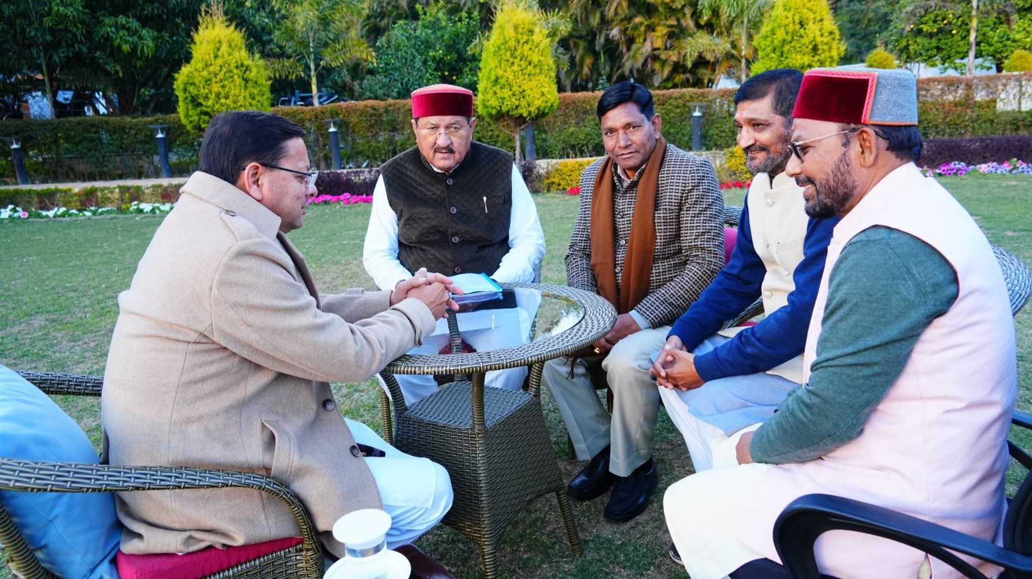 शासकीय आवास पर मुख्यमंत्री धामी से विधायक श्री Bharat Singh Chaudhary जी, श्री Shakti Lal Shah जी, श्री Anil Nautiyal जी, श्री Bhupal Ram Tamta जी एवं श्रीमती Sarita Arya जी ने भेंट कर क्षेत्र के विकास से जुड़े विभिन्न विषयों पर चर्चा की।