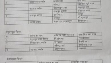 विभिन्न स्थानों के नाम में परिवर्तन की घोषणा